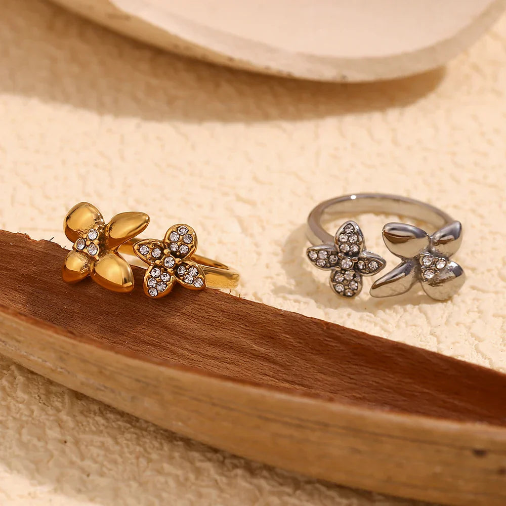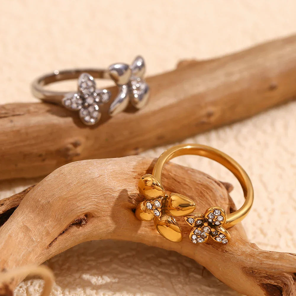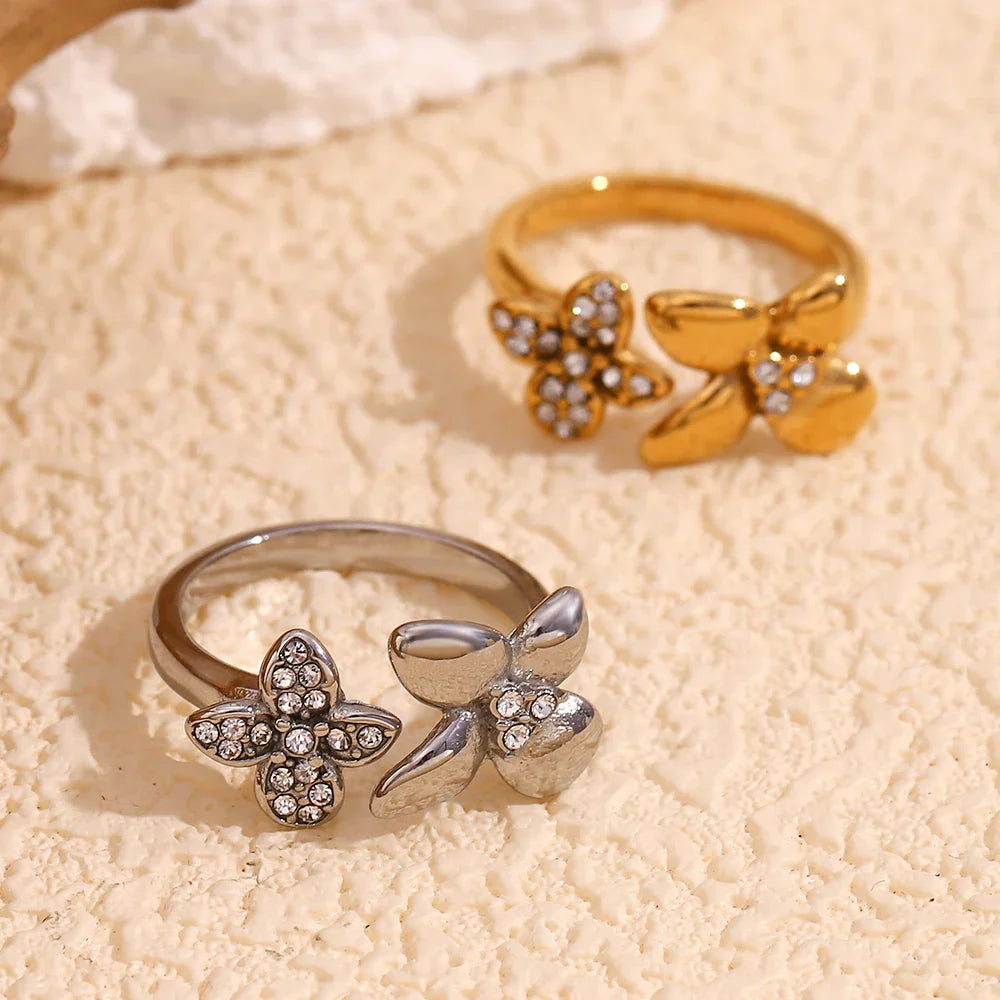 Asymmetrischer Blumenring mit Zirkonia für Frauen