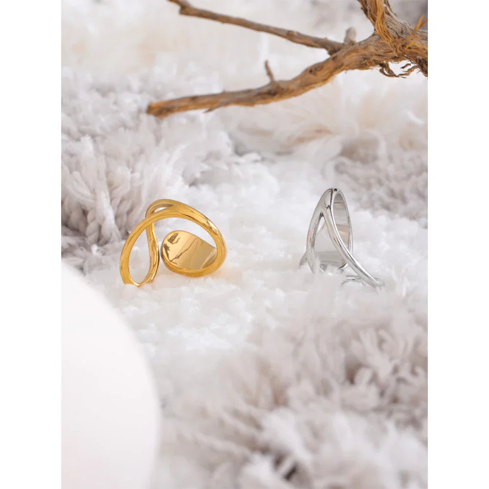 Verstellbarer Geometrischer Ring aus Edelstahl 18K