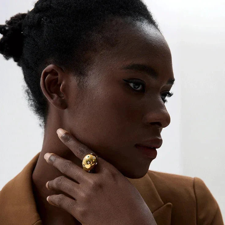 Exklusives Design: Die geometrische Form und das polierte Finish machen diesen Ring zu einem einzigartigen und modernen Stück.